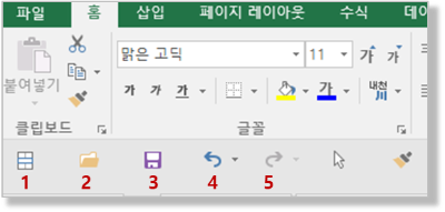 - 빠른 실행 도구 모음에 등록된 메뉴는 순서대로 1, 2, 3,… 의 내부적인 숫자를 가지게 됩니다.